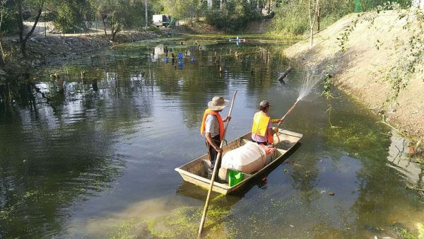 保定市安新縣4號坑塘治理階段——水體修復(fù)