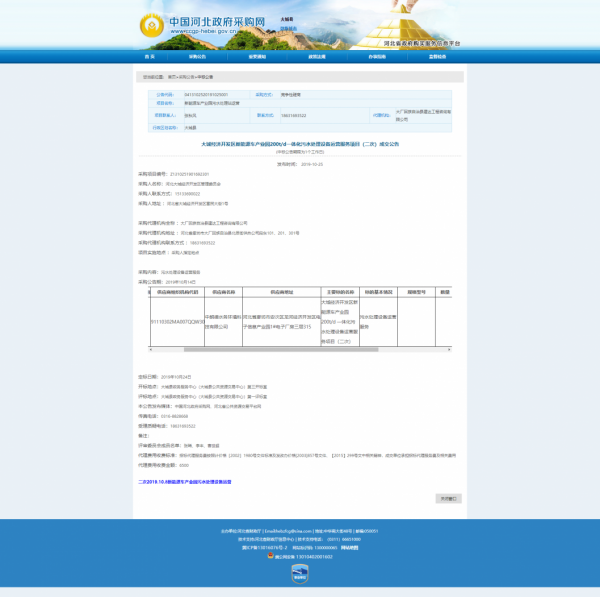 熱烈祝賀中朗德水務(wù)環(huán)境科技有限公司于2019年10月24日在河北廊坊“大城經(jīng)濟開發(fā)區(qū)新能源車產(chǎn)業(yè)園200t/d一體化污水處理設(shè)備運營服務(wù)項目(二次)”的投標(biāo)活動中,一舉中標(biāo)!